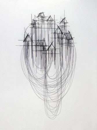 Le strutture tridimensionali sono realizzate attraverso l'unione e l'intersecarsi di migliaia di linee, che vanno a formare con il loro infittirsi la struttura e l'immagine che arriva all'osservatore. Linee e strutture che rappresentano gli edifici, ma anche le connessioni di chi li abita, le comunità, le famiglie. Linee che hanno una natura assolutamente materiale: acciaio, legno, plastica e corde di pianoforte, questi sono i materiali di cui si serve l'artista. Il tratto monocromatico, esalta ulteriormente l'aspetto di apparente semplicità e di schizzo improvvisato.