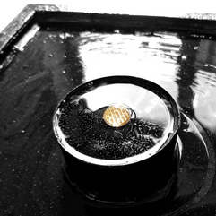 La resina epossidica è il materiale con cui creo l'effetto lucido/bagnato. È un bicomponente chimico che mi consente anche di assemblare diversi materiali fra loro e nel suo aspetto è identico all'acqua, elemento primordiale e matrice di vita.