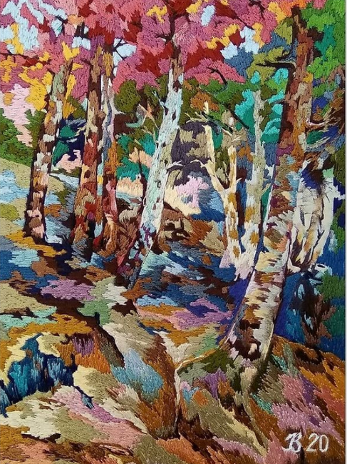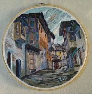 Ecco perché Jani ha deciso di mescolare entrambe le cose, prima dipingendo l'ambiente circostante come si riflette nei suoi pensieri, e poi seguendo il modello ricamando con i colori del filo Mouliné. Anni dopo, si è finalmente dato la possibilità di rallentare e dare sollievo ed equilibrio alla sua vita attraverso un'opera d'arte accuratamente dettagliata.
