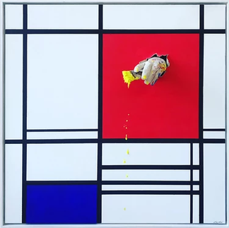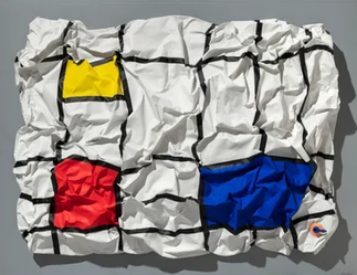 In the series we can then find not only brushes, but also other basic tools of the painter, such as spatulas and palettes. What is striking, besides the shock of the distortion of the canvas, is the essential and powerful chromatic impact. Almost always we find a monochromatic contrast between stroke and canvas, sometimes instead shading, multicolored strokes, or canvases that have classical textures drawn over them, as if they were curtains or porcelains. But the effect on the viewer is always disruptive, and brings us back to another concept that the artist himself highlights: