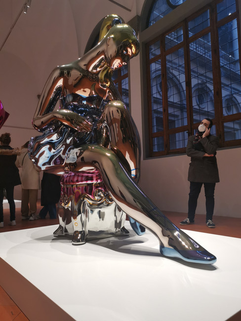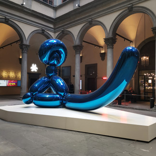 È proprio la scimmia gigante di Jeff Koons che con i suoi 6 metri di lunghezza e le 5 tonnellate di peso, occupa il cortile rinascimentale di Palazzo Strozzi e da il via alla mostra. La cosa bella di quest'opera e che si è trasformata anche in un’opera d’arte pubblica in quanto essendo all'ingresso, la si può vedere quante volte si vuole, facendo una passeggiata, o andando a gustarsi un caffè al bar del museo senza necessariamente acquistare il biglietto di ingresso.